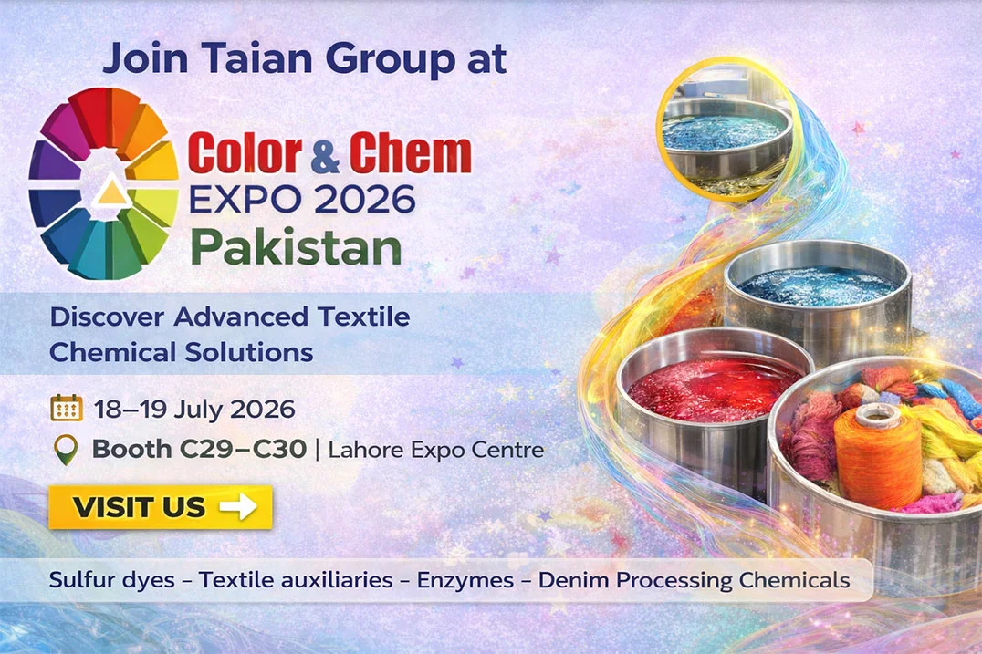 Taian Group will participate in DCC Expo 2026 to showcase our latest textile chemical solutions, including sulfur dyes, textile auxiliaries, enzymes, and printing & dyeing chemicals.